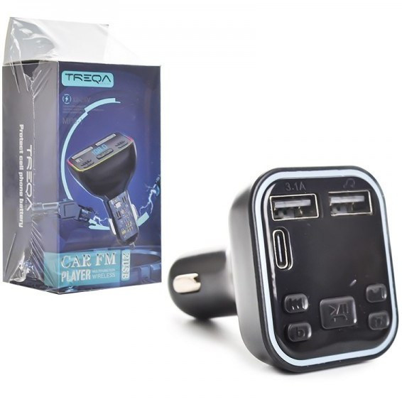 FM پلیر بلوتوث فلش خور + شارژر فندکی 20W سه پورت ترکا (TREQA) مدل MP3-1