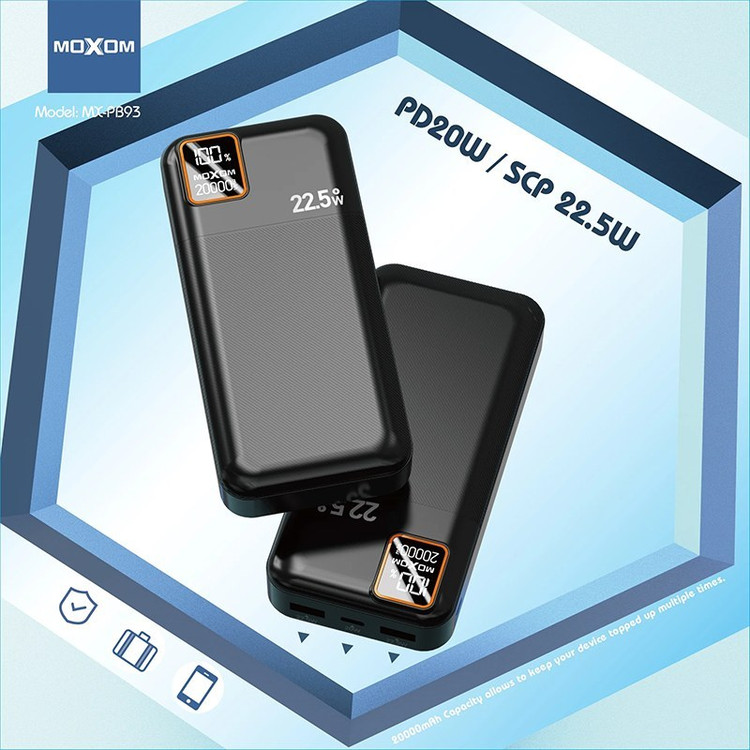 پاوربانک موکسوم مدل MX-PB93 ظرفیت 20000 میلیآمپر ساعت