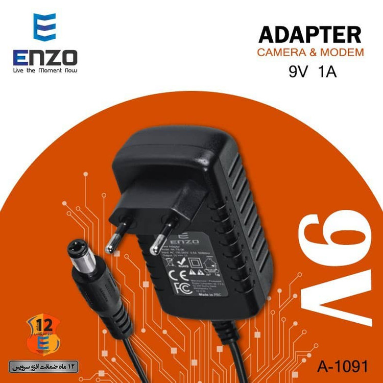آداپتور 9 ولت 1 آمپر انزو مدل A-1091؛ تغذیهای مطمئن برای تجهیزات الکترونیکی خانگی و صنعتی