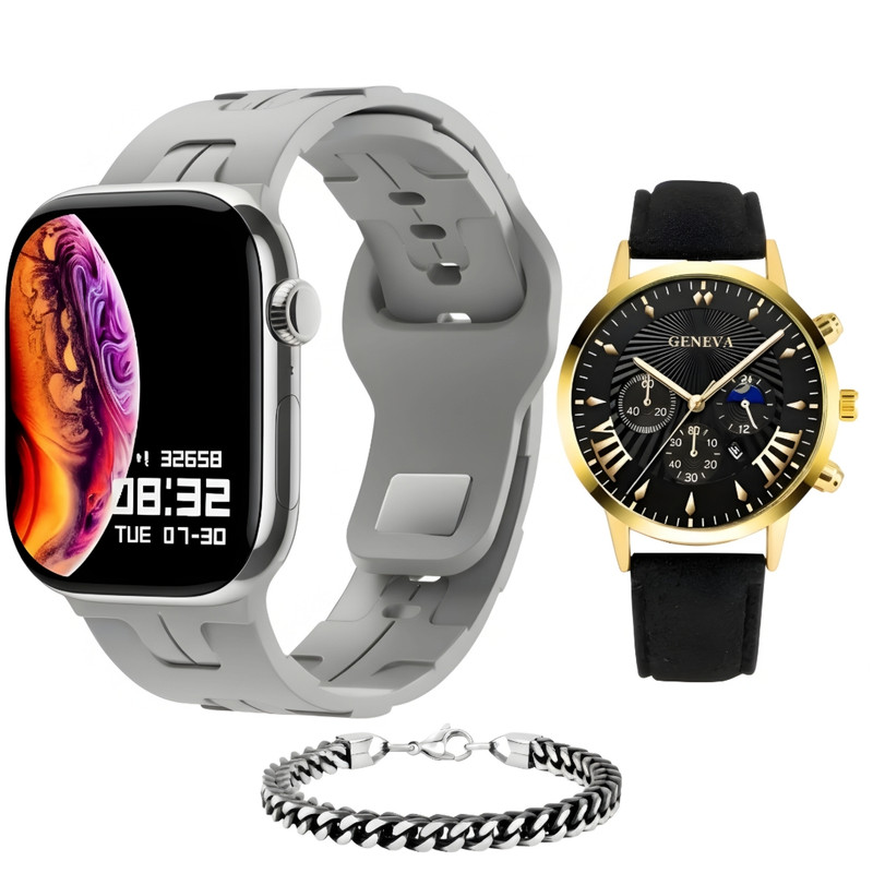 حالا بخش باحال ماجرا: توی جعبه فقط ساعت نیست. 3 بند رنگی مختلف داری که هر روز با تیپت ست کنی. یه دستبند کارتیه هم هست برای وقتایی که میخوای شیکتر باشی. حتی یه ساعت عقربهای کلاسیک هم برات گذاشتیم که وقتی حس نوستالژی گرفتی، بگی: “خب، امروز مود کلاسیک!”