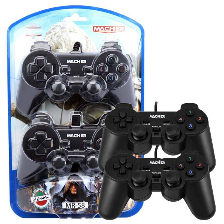 دسته بازی MACHER مدل MR-58 یک دسته بازی باسیم با کابل USB با طراحی ارگونومیک و بدون نصب و با اتصال اسان برای انواع کامپیوتر و لپ تاپ طراحی شده است. دسته بازی MR-58 دارای چهارکلید تغییر جهت، چهارکلید با اعداد 1/2/3/4 و دو آنالوگ استیک می باشد. این گیم پد دارای دکمه های تغییر جهت، دکمه های select وstart و mode به عنوان کلیدهای کاربردی در حین بازی ،2موتور شوک قوی که برای افرادی که به استفاده از جواستیک عادت دارند مورد استفاده قرار میگیرد. وجود دو موتور شوک و لرزاننده قدرتمند دراین دسته بازی باعث هیجان بیشتر در هنگام بازی های اکشن ، که در هنگام بازی در زمان شلیک و انفجار به لرزش در می آیند ،می شوند. این دسته بازی باتمامی سیستم عامل ها سازگار می باشد.