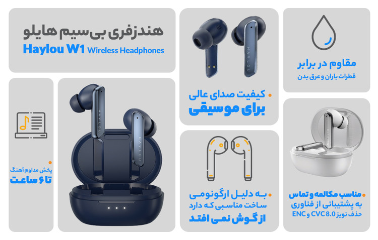 اولین چیزی که در هدفون بلوتوثی هایلو مدل W1 نظرتان را جلب خواهد کرد طراحی شیک، ساده اما بسیار زیبای آن است که در کنار ویژگیهای کاربردی و کیفیت بالا کاربران را راضی میکند. این هدفون به صورت بیسیم طراحی شده و طراحی و تولید ارگونومیک گوشیهای آن باعث میشود که به راحتی در گوشتان قرار گیرد و نگران افتادنشان نباشید و همچنین در استفادههای طولانی مدت گوشهایتان خسته نشوند. خروجی صدای این مدل کیفیت بالایی دارد و انتقال صدا را با سرعت و کفیت خوبی انجام میدهد. این محصول شرکت هایلو با یک محفظه شارژ به بازار عرضه شده است که این محفظه از طریق درگاه USB-C قابل شارژ است. W1 دارای استانداردهای SBC, AAC, aptX, aptX Adaptive, A2DP, AVRCP, HFP, HSP است و به دلیل برخورداری از IPX4 هم در برابر رطوبت و طریق تا حد مناسبی مقاوم است. گوشی این هدفون دارای قابلیت کنترل لمسی است و به طور کلی میتوان گفت هدفون بلوتوثی مدل W1 محصولی است که میتواند کاربران را در انجام کارهای روزمره، ورزش و استفادههای گیمینگ همراهی کند.