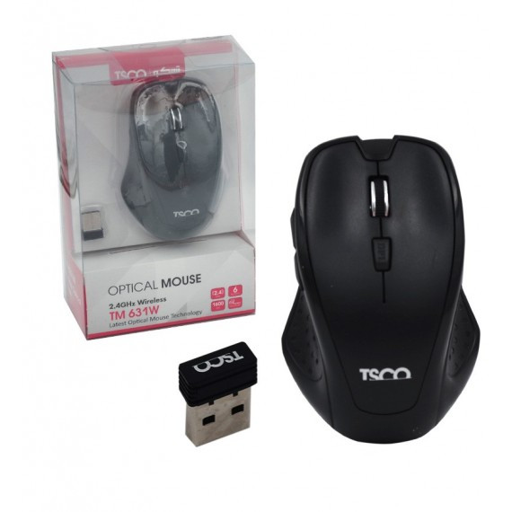 موس بی سیم TSCOمدل TM 631W از طریق دانگل به سیستم متصل می شود. این موس وایرلس به صورت ارگونومیک طراحی شده است. موس تسکو TM631 دارای 6 کلید مجزا است و با حسگر اپتیکالی که در آن تعبیه شده است دارای دقتی بین 800-1600DPI و فرکانس 2.4GHz می باشد که قابلیت بردی به طول 10متر را شامل می شود. موسTM 631W چون از نوع بی سیم می باشد انرژی آن از پورت USB تامین نمی شود به همین دلیل دارای 2 عدد باتری نیم قلمی می باشد. ویژگی Polling Rate در این موس به میزان 125 هرتز است. این ویژگی تعداد فاصلههای یکسان در دقت موس را اندازهگیری میکند. موس TM 631W با سیستم عامل های 98 / 2000 /7 / 8 / 10 / XP / Vista / Mac سازگار می باشد.