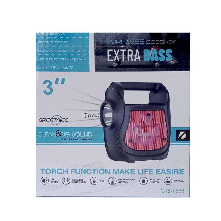 مینی اسپیکر بلوتوثی و قابل حمل Great Nice مدل GTS-1533 با قابلیت اتصال از طریق بلوتوث، پشتیبانی از درگاه های ورودی USB و یک شیار کارت حافظه که میتوانید بر حسب نیاز یکی از این راه ها را انتخاب کنید. از امکانات بلوتوثی بودن می توان آن را به هر دستگاه بلوتوث دار، از جمله گوشی موبایل یا تبلت وصل شد و از طریق آن آهنگ دلخواه را پلی کرد و کنترل کرد. دو پورت ورودی USB و یا شیار کارت SD نیز راه حلی مناسب در مواقعی که گوشی دردسترس نباشد؛ براحتی آهنگ یا پادکست مورد علاقه خود را روی فلش و یا مموری ریخته و اقدام به پخش کنید. دو پورت های usb/tf card قابلیت پشتیبانی و پخش فایل های آهنگ با فرمت FAT32 با حداکثر سایز 32 گیگ را دارد.